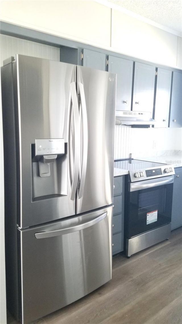 New listing in Spanish Trails West where the HOA is $142 a month, and you get Internet, TV, Lawn Mowed, Heated Pool, Club House and a friendly, busy community. This 1988 home has 1,008 sq.ft. and updated. To start, the roof was replaced in 2023, the kitchen has added cabinets, all the appliances are new including a side-by-side refrigerator with a bottom freezer, smooth top stove. dishwasher, and microwave.The floors are vinyl plank for easy care and waterproof. Newer washer & dryer moved inside but hidden behind doors, new insulated windows, and the master bathroom has been done over with a culture marble countertop, plus a redone walk-in shower with a built-in chair. You have sliding doors to bring you out from your living room to your front porch that's screened in with vinyl windows to enjoy.You'll enjoy the community with coffee hours, dances, potluck lunches, Sunday Ice Cream, plus an inside shuffleboard court, Pickell ball, card playing and crafts and bingo and more. The pool is heated when needed and the club house holds a pool table to enjoy. Come see what's been done, this may be just what you're looking for at $138,000!